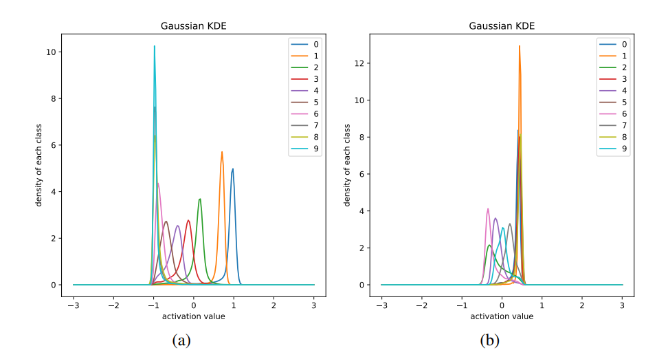图 3a 和 3b 可视化了前馈网络中最后一个隐藏层每一个类别的激活值。