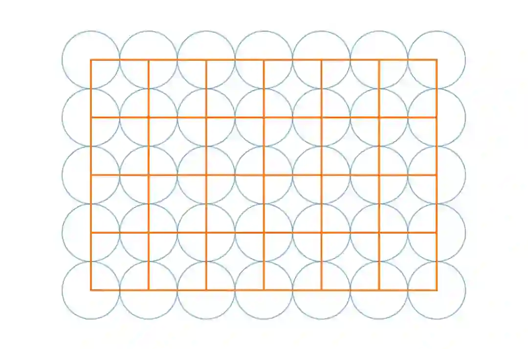 这样圆之间的缝隙更小,排列的密度也更高了。实际情况怎样,我们来算算。