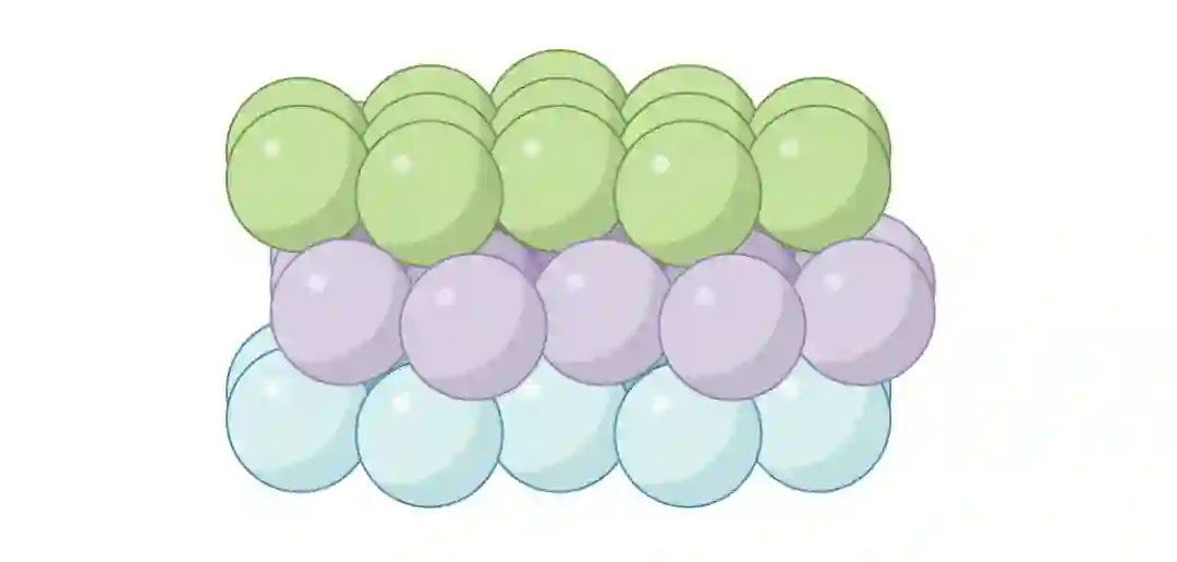 这样就相当于第三层球位置与第一层一样。从上面俯看下去,第一层和第三层重合,也就是ABABAB……的排列方式。