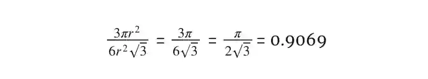 可以看到,填充率一下子提升到了90.69%,六角比正方形排列的效率更高。实际上也没有其他方法比六角排列的填充率更高了。