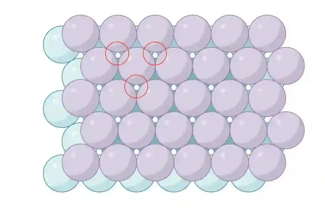 一种方式是堆积六角堆积(HCP),就是填补如下的孔洞: