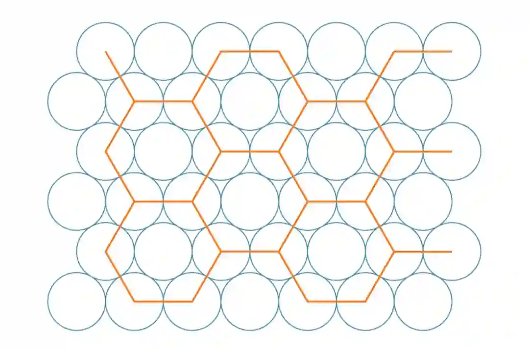 第一层,我们用六角堆积的方式占据尽可能多的空间: