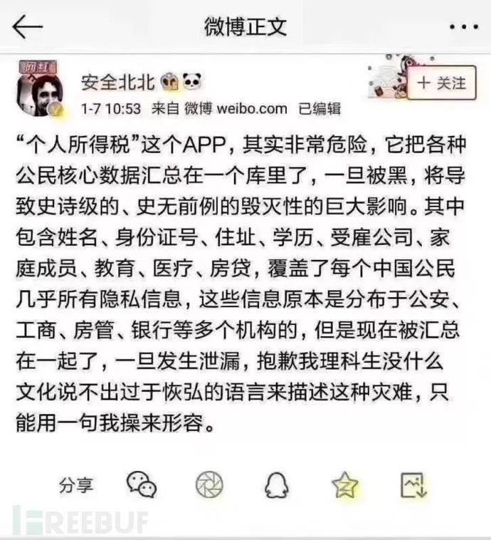 首当其冲的是隐私泄露。这次税改之后,很多的申报环节涉及到住房、养老等信息,所以申报时填写的信息从身份证号码、学历、住址到工作信息、房贷、医疗等等都需要被记录。有人对于官方APP的风控能力有所担忧,但是可以确定的是在假冒APP上这些信息天上必定存在非常大的信息泄露风险。