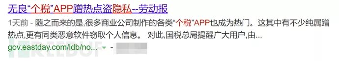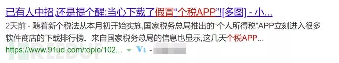 我们以关键词“个税”进行搜索时,出来的第一个并非国家税务局官方出品的APP。