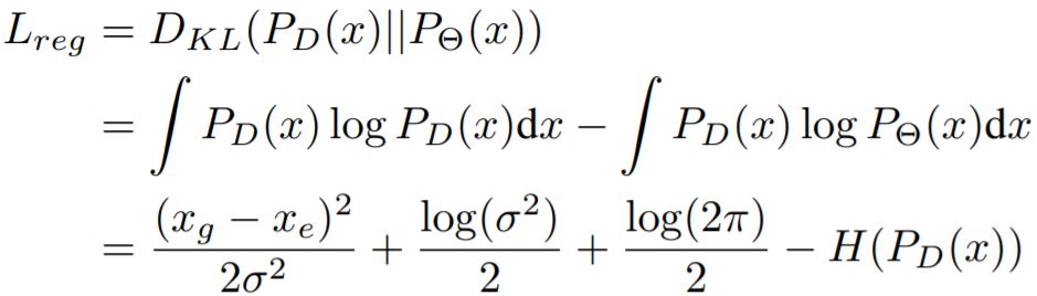 如图 4 所示,当 x_e 不准确时,网络会预测得到更大的方差 σ²,使 L_reg 更低。
