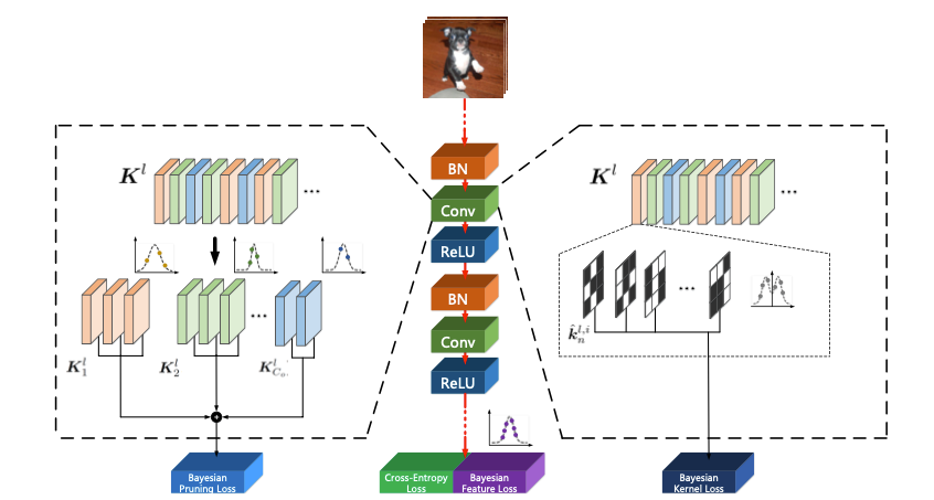 我们将BONN的训练流程具体分为两个步骤:基于贝叶斯学习的1-bit网络训练、基于贝叶斯学习的1-bit网络剪枝。
