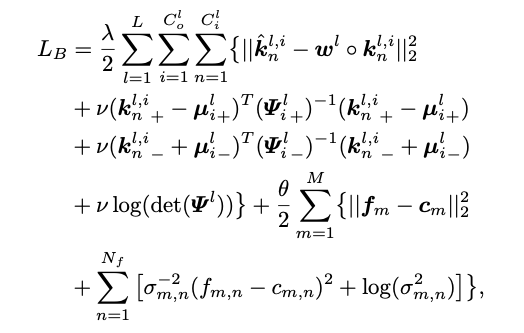 综上所述,我们我们使用三个贝叶斯损失来优化1比特CNN,这形成了我们的BONN。为此,我们重新制定了第一个用于训练损失函数为: