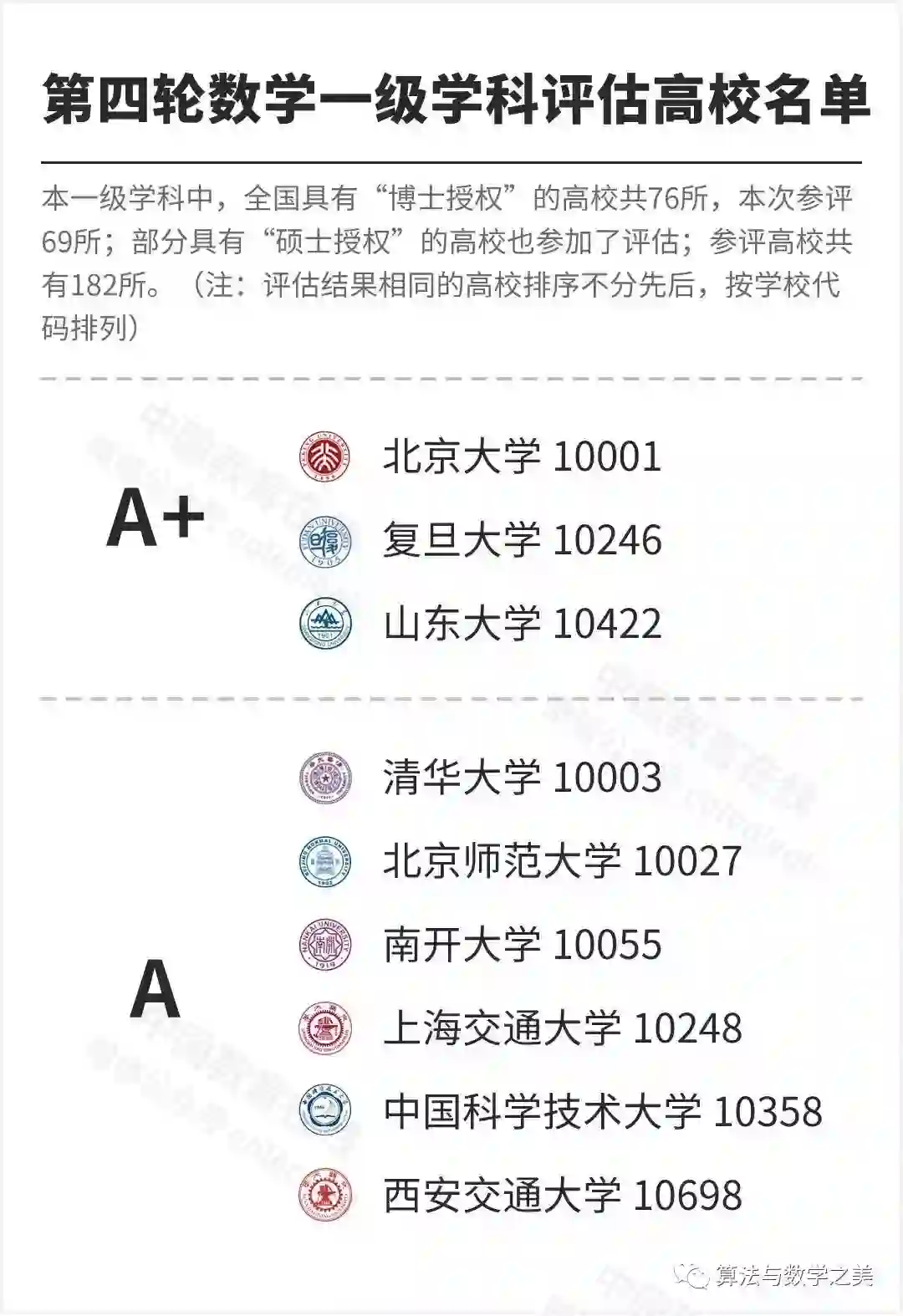 下面我们来看看第四轮学科评估为A+及A的各高校数学院系都开设了哪些专业?