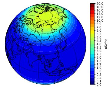图5 2017年9月10日 10km高度上太阳质子事件引起的有效剂量(μSv/h)
