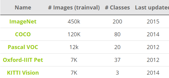 不幸的是,目标检测的数据集不是太多。数据比较难(也很昂贵)获取,公司可能不愿意免费发布他们投资的产品,大学又缺乏资源。