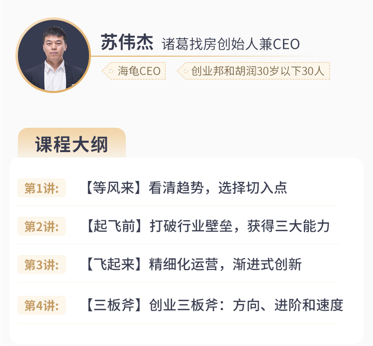 诸葛找房创始人兼CEO苏伟杰是一位房产行业的连续创业者,从租房平台到房产信息平台,苏伟杰最大的感触是,