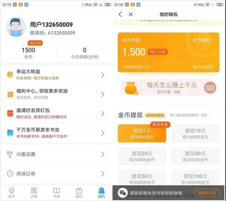 今年年中上线的米读小说极速版复制了趣头条App的金币体系