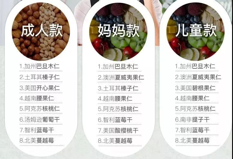 在每日坚果的用户画像中,主要是生活在一二线城市的白领妈妈,产品也在成人款基础上进行了精细化设计,细分了【妈妈款和儿童款】。