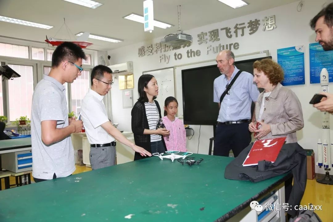 无人机实验室纪朝宪、信息技术组梁霄、张思、常青、谷多玉、武迪、英语组王忆欣和外事办公室马欣等老师参与了接待和座谈工作。