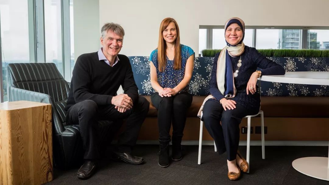 微软研究员Patrice Simard,Alicia Edelman Pelton和Riham Mansour(从左至右)正在将机器教学融入微软产品中