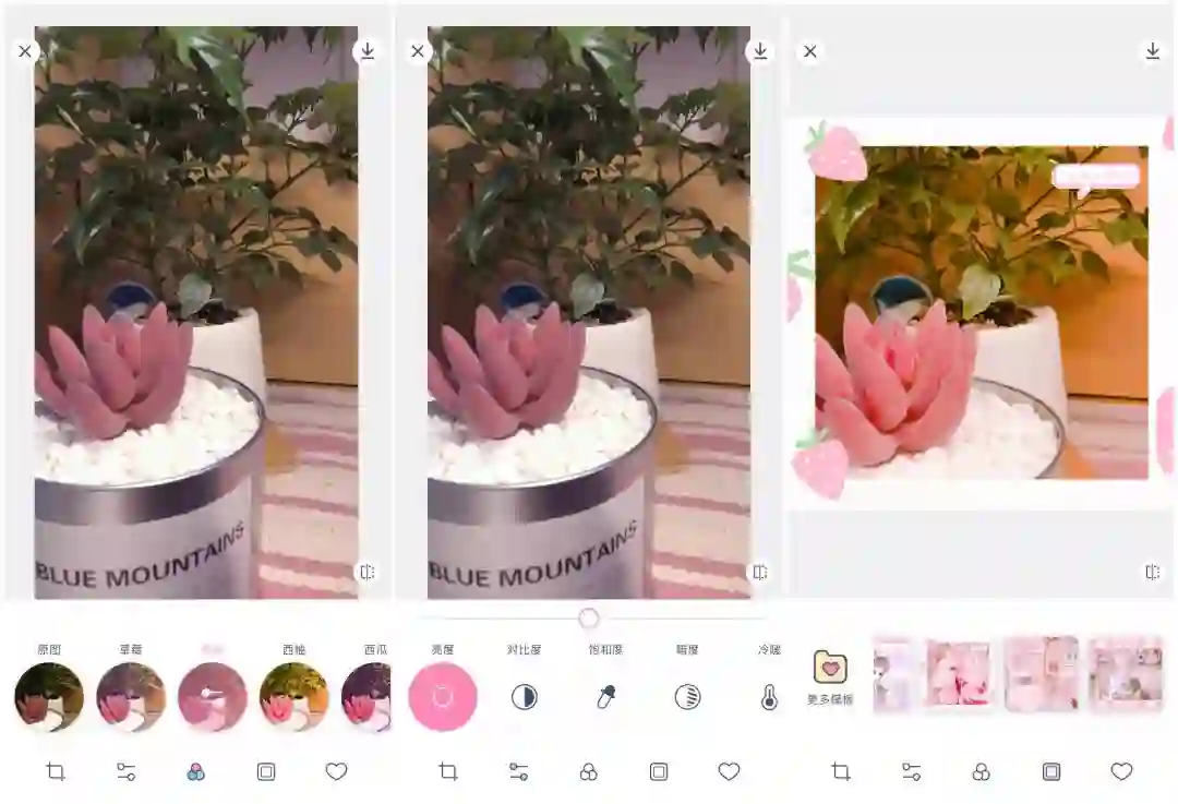 郭采洁热衷于给自己的照片加上胶片风的滤镜,她曾分享了自己使用的滤镜 app——MOLDIV。它既是一款包含了多种形态相框的强大拼图 app,同时也是一款功能丰富、简单易用的后期处理 app,它提供了近两百种相框,一百多款滤镜,还有多种编辑工具,综合性极强。