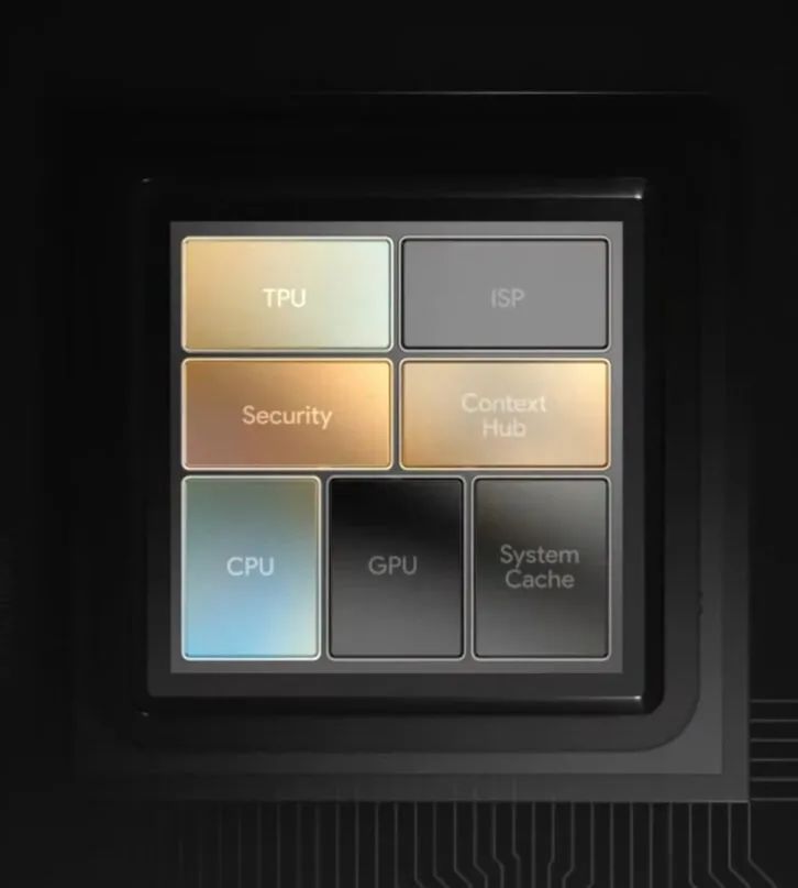 它集成了谷歌定制的 TPU(Tensor 处理单元),类似于苹果 A 系列芯片上的神经网络引擎,以及定制的 ISP(图像处理单元)。谷歌招牌的相机表现、人脸检测、实时翻译等,都能吃到 Tensor 的 buff。