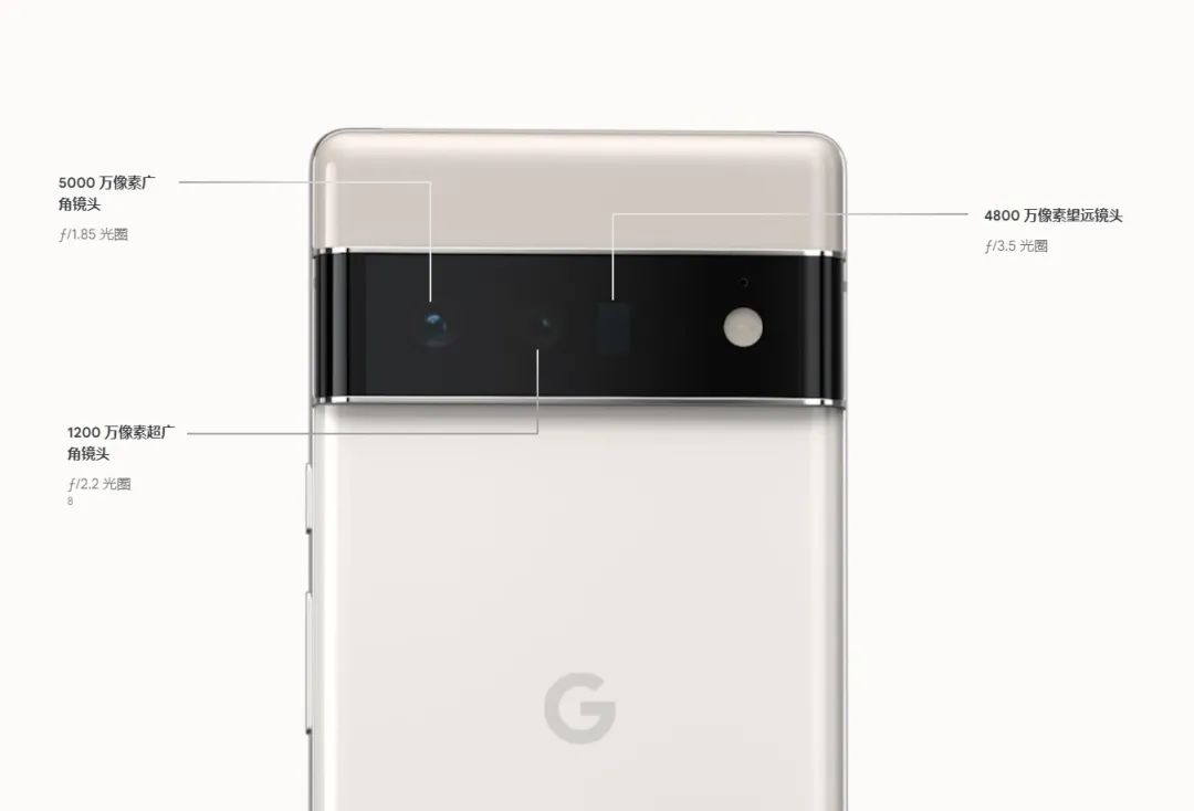 先说相机配置,这次谷歌为 Pixel 6、6 Pro 配备了 5000 万像素主摄像头(ƒ/1.85,1.2 μm)、1200 万像素超广角摄像头(f/2.2,1.25μm,114° 视野),Pixel 6 Pro 则要多一枚 4800 万像素的潜望式长焦摄像头(ƒ/3.5,0.8μm),支持 4 倍光学变焦,最大 20 倍数码变焦。