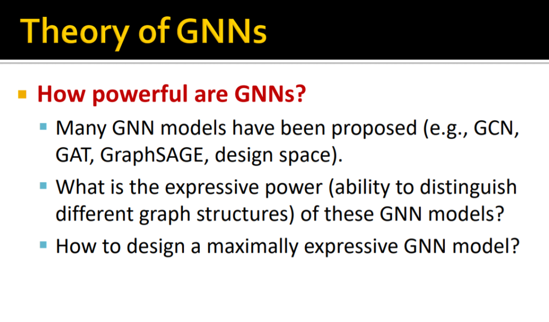 作者表明,在区别不同图结构时,GNNs最多只能取得和 WL test 一样效果,即,GNNs表征能力的上限是WL test;
