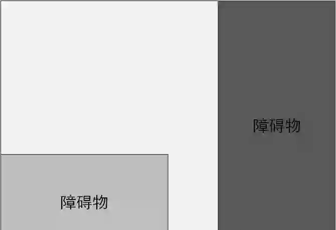 也许有人对windows98时代的迷宫屏保还有印象,屏保中,使用一直沿着左侧墙壁和一直沿着右侧墙壁都会最终走出迷宫,这是因为普通迷宫的拓扑结构就是两条平行线中间有一个通道,按照这种思路,无人机遇到下图这种简单策略躲不过去的障碍时,完全可以采取类似的方式,就一直向左或者向右寻找出路。即如果上面右图的局部场景的完整形态如果如下图所示的话,沿着图中的两条曲线为路径都可以绕过去,如果场景比下图更复杂,绕过去的路可就需要苦苦追寻了。
