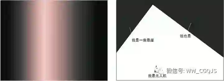 但是别高兴太早,这种策略可以满足大多数应用场景,但是问题还远没有解决,看下面的左图,一架无人机刚绕从一座高大建筑旁绕过去,然后得到了如左图的障碍物深度图像,如果按照前面的策略,肯定是要往颜色最前的地方飞行,好那我要是告诉你其实右图是无人机和两座悬崖几何关系的俯视图,请你告诉我无人机会怎么飞,如果按照前述的策略,这又必将是一场刻骨铭心的事故。