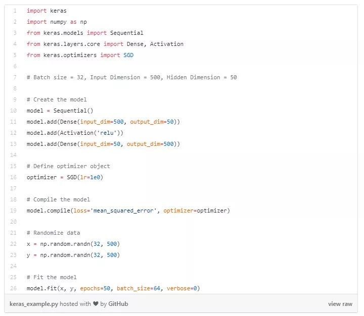 Keras是其后端库的包装,该后端库可以是TensorFlow或Theano - 这意味着如果你们在使用以TensorFlow为后端库的Keras,你实际上是在运行TensorFlow代码。Keras为您考虑到了许多基本细节,因为它针对神经网络技术用户,而且非常适合那些练习数据科学的人。它支持简单快速的原型设计,支持多种神经网络架构,并可在CPU / GPU上无缝运行。