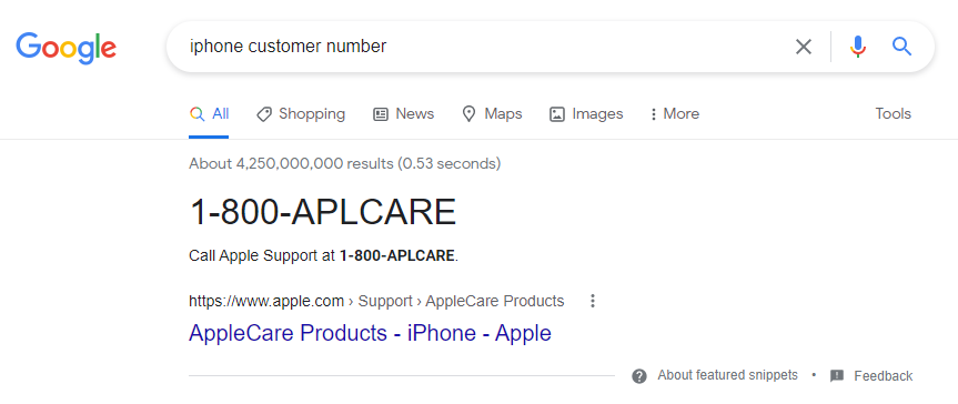 “这不仅仅只是 Bing 的问题。如果你在 Google 上搜索是输入了错误字词,如‘Iphone 客户号码’,结果就会显示 1800,而这是某个欺诈印度呼叫中心。”