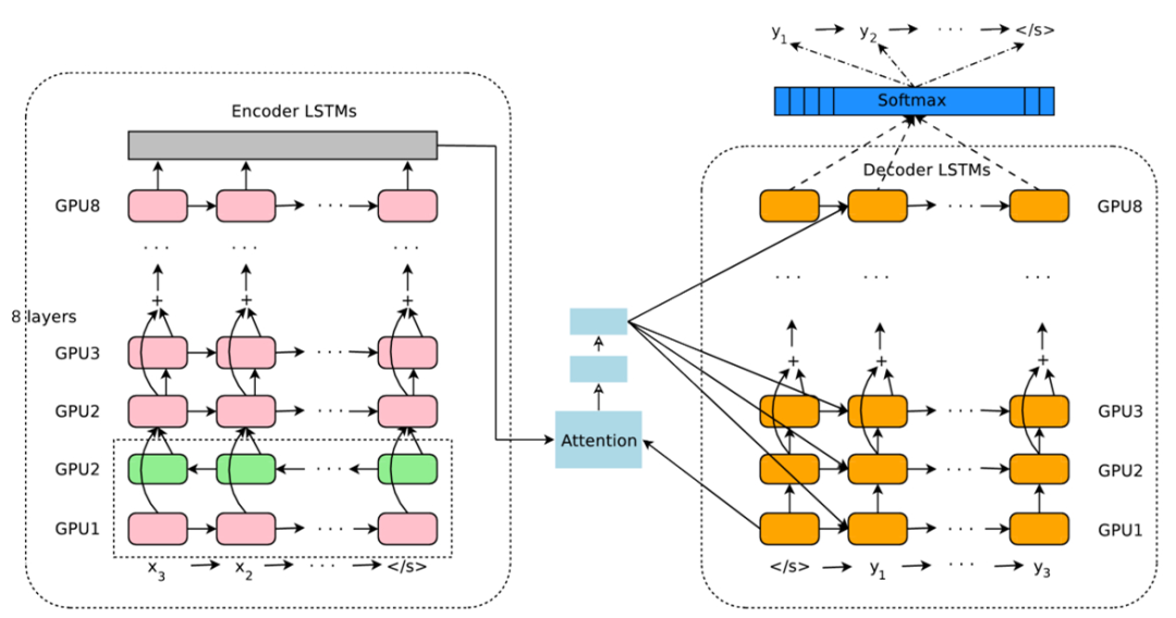 此外,GNMT还利用了Attention,这是一种允许模型在需要时关注输入序列相关部分的机制。如图1 所示,其中编码器的顶部向量使用注意力分数加权。换句话说,每个时间步骤中的每个单词都有一个可学习的分数,以最小化错误。要了解更多信息,请查看资料: