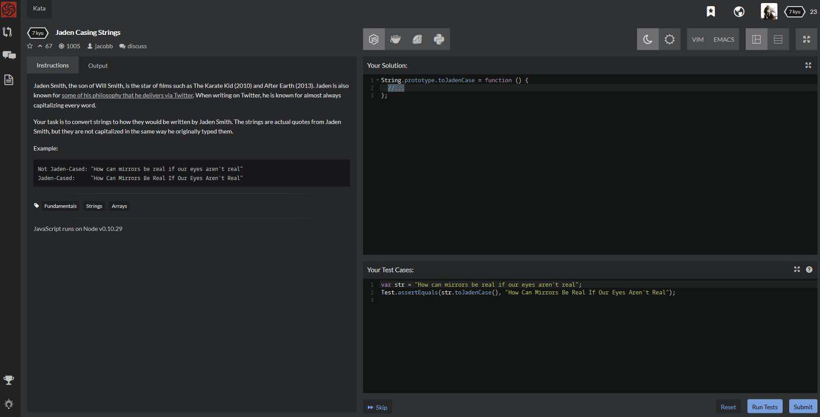 Codewars 提供了很多由他们自己社区提交的编码挑战,挑战者可以用几种语言在编辑器中直接在线完成挑战。用户还可以查看针对每个挑战的讨论以及其他用户的解决方案。我觉得你会喜欢 Codewars 的,就像社区里很多开发者已经喜欢的那样。