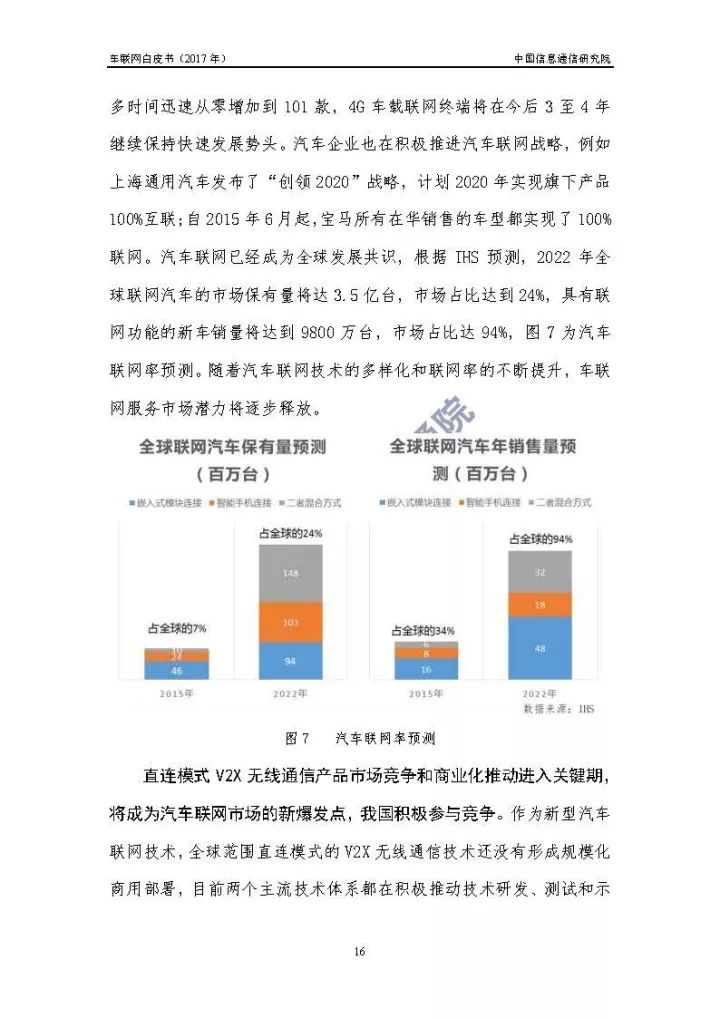 本白皮书在深入解读车联网概念内涵基础上,研究车联网关键技术发展路线,分析判断车联网产业的新形势、新机遇,把握全球车联网产业和政策导向以及我国面临的挑战,提出我国发展车联网的策略建议。(如需下载全文,请在评论区留下您的邮箱)