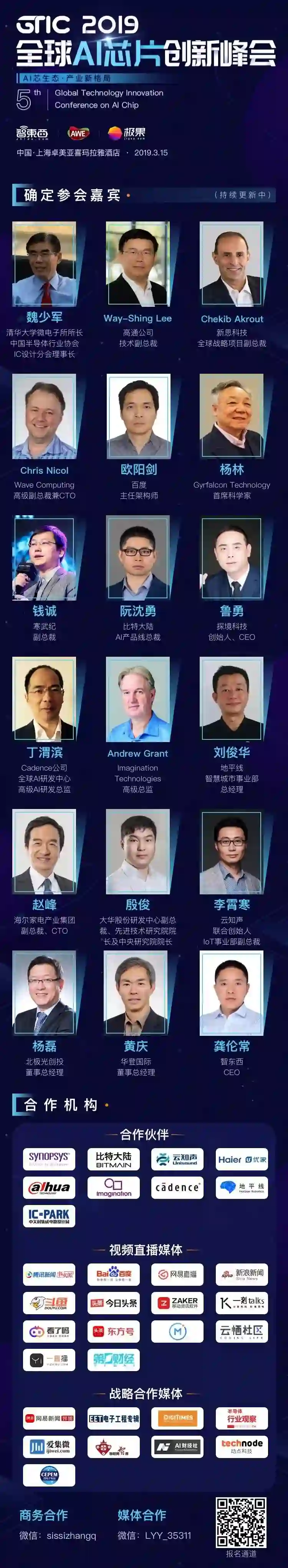 3月15日,智东西年度大会「GTIC 2019全球AI芯片创新峰会」将在上海拉开帷幕。目前魏少军教授、高通技术副总裁李维兴、百度主任架构师欧阳剑、Wave Computing高级副总裁兼CTO Chris Nicol、GTi首席科学家杨林、寒武纪副总裁钱诚、新思科技全球战略项目副总裁Chekib Akrout、海尔家电产业集团副总裁兼CTO赵峰等18+位重量级嘉宾已确定参会。欢迎报名。