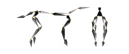 实验中使用的狗模型的骨架结构。由27块骨头组成,总共有81个自由度。