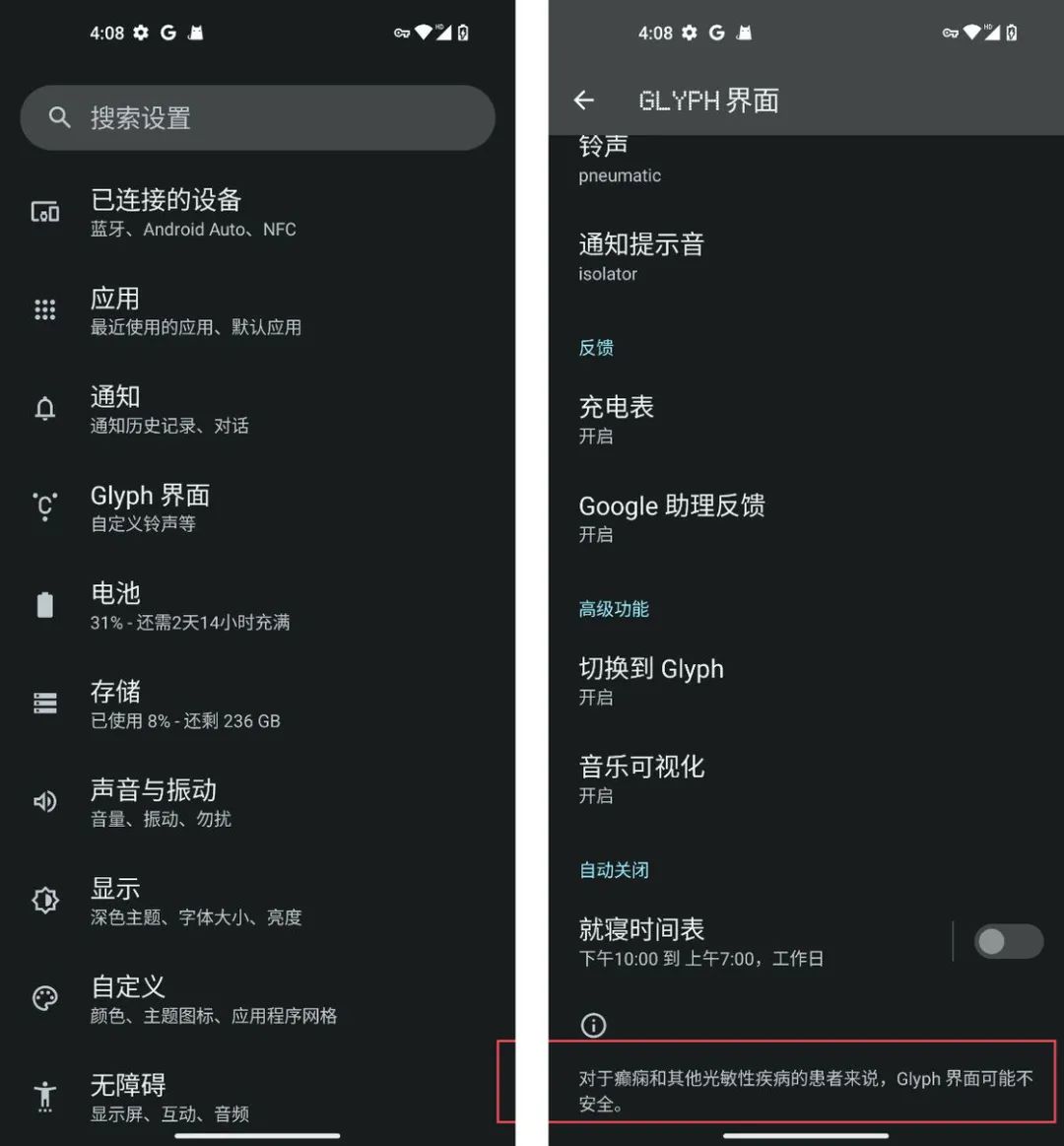 可需要注意的是,如果你有光敏性癫痫的病史,尽量还是不要在这款产品背部 LED 模组闪烁时正视它。这并非是危言耸听,甚至在系统的设置项里也有相关的提示。所以严格来说,这款产品的是存在一定使用风险的。