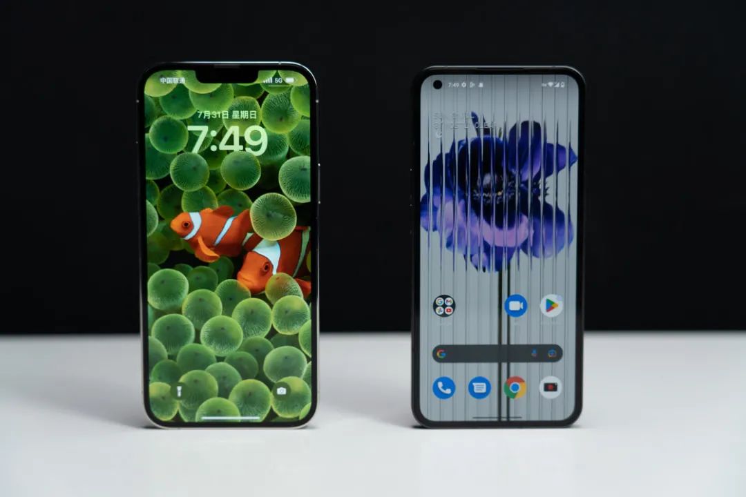 在屏幕的通透度上,Nothing Phone (1) 也略低于 iPhone。虽然纸面参数上支持 120Hz 的刷新率、10bit 色深和 HDR10+,色彩准度也不算差,可以说和 iPhone 打得有来有回,但实际体验时和顶级的屏幕一比较,依然会有落差。
