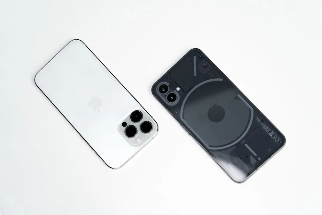 虽然整个产品的形体和设计语言都很 iPhone,Nothing 并没有和 iPhone 一样通过拼工艺的方式来让别人觉得自己「高端」。没有了大面积的抛光铝合金、没有了一块玻璃同时使用两种工艺这种秀生产能力和品质把控能力的细节,Nothing Phone 换来的是 193g 的重量,相比 iPhone 轻了 40g 左右。