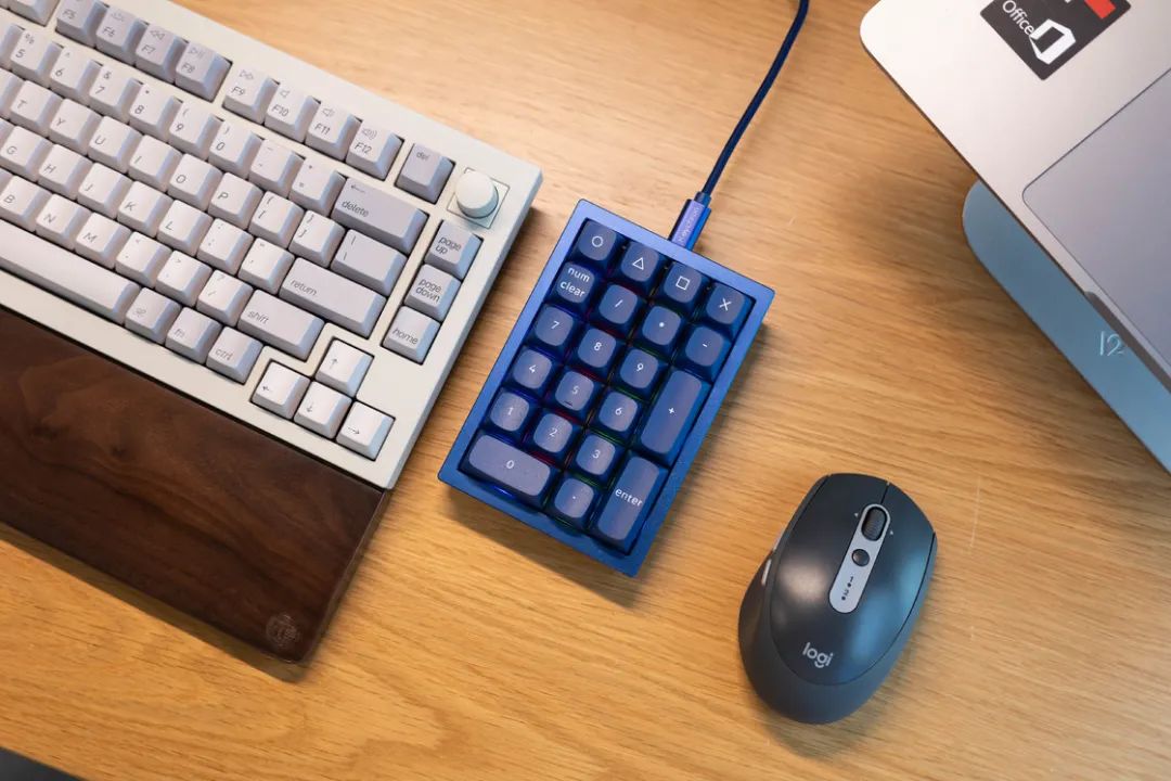 而对于大量输入数字需求的朋友 Q0 是一款精致小巧的数字键盘,尽管它被设计成一个数字键盘,但它还可以被作为一个额外的宏,你可以通过 VIA 或 QMK 由定制每一个按键的功能。Q0 与系列产品采用一样的 CNC 铝制机身,热插拔、RGB 灯、PBT 键帽这些 Q 系列有的它都有,可以在数字小键盘上体验到客制化的玩法。