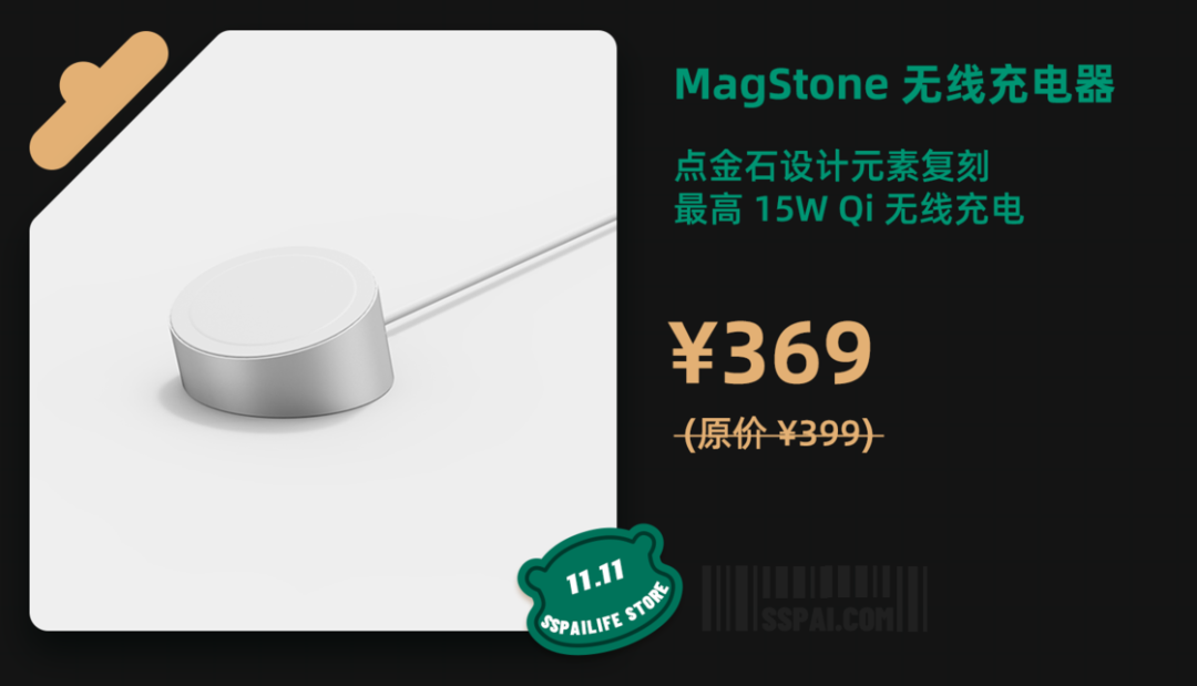 【淘宝】https://m.tb.cn/h.UfGUISQ?tk=5zZMd09MOcI CZ0001 「sspai x JSAUX MagStone 点金石无线充电器 15W Qi 适用于iPhone」