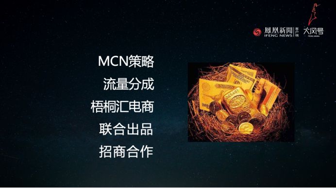 第二,我们和凤凰卫视有很好的互动,凤凰卫视会专门在节目中开辟有关凤凰大风号新媒体和我们的联动,很多内容特别是视频内容会登上凤凰卫视,还可以直播,所以在这方面也体现出我们平台独有的长处。
