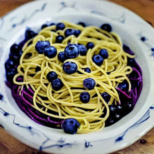 还能从一盘草莓意大利面,丝滑变成一份蓝莓面。
