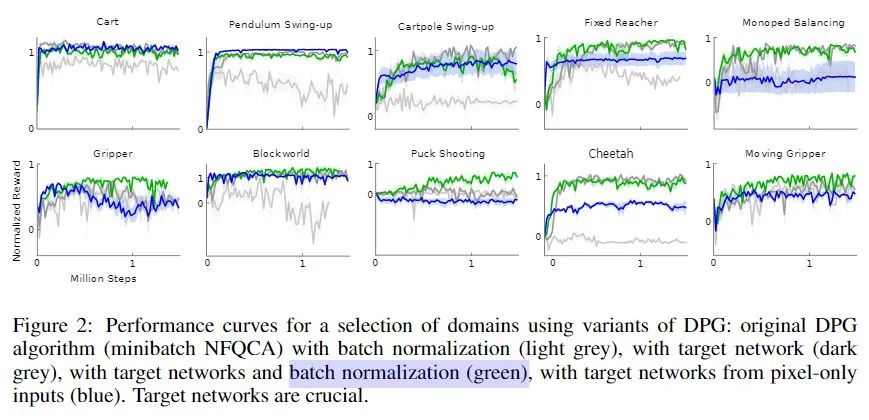 早在2016年,就有人讨论过 BN in RL 了,他们的结论也是:RL不需要使用BN,BN带来的性能提升微乎其微,远远不如 soft target update、(和后来的)Generalization Advantage Estimate 等技术。