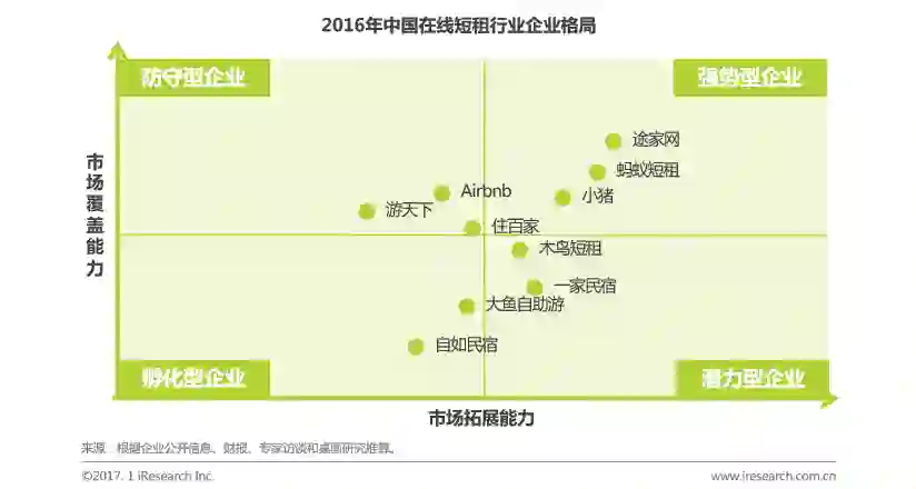 但与庞大的市场预估相对的,是Airbnb略显尴尬的地位。同样是来自艾瑞的报告:Airbnb在中国短租市场只是一个“防守型”企业: