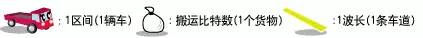 下面通过汽车和车道来说明通信方式。假设汽车代表占有车道的时间(1区间)、货物代表每次搬运的信息量(比特数)、车道代表光的一个波长。