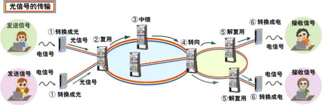 传输过程中,信号的波形和强度发生劣化,因此需要将波形复原到原信号那样整齐的波形,加大光强。如果波形劣化严重,就需要暂时将光信号转换成电信号,波形错误修正后,重新转换成光信号进行传输。
