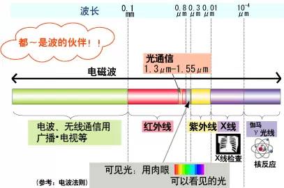 波长不同,种类各异。光通信中所使用的频率是1.3微米或1.55微米,属于红外线的一种。