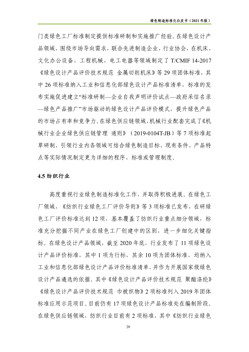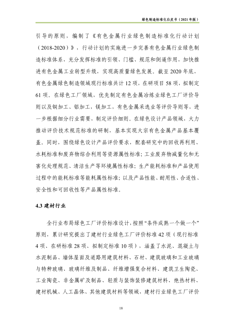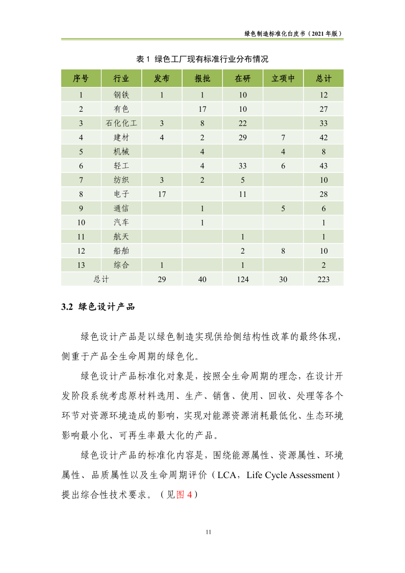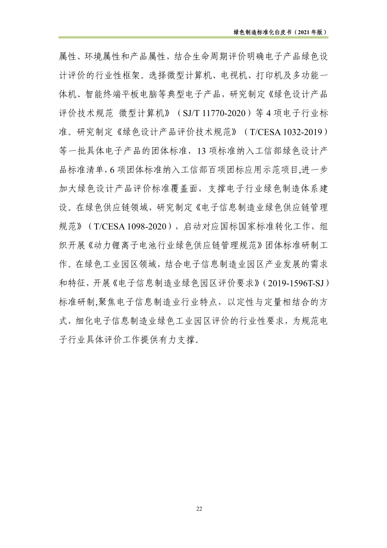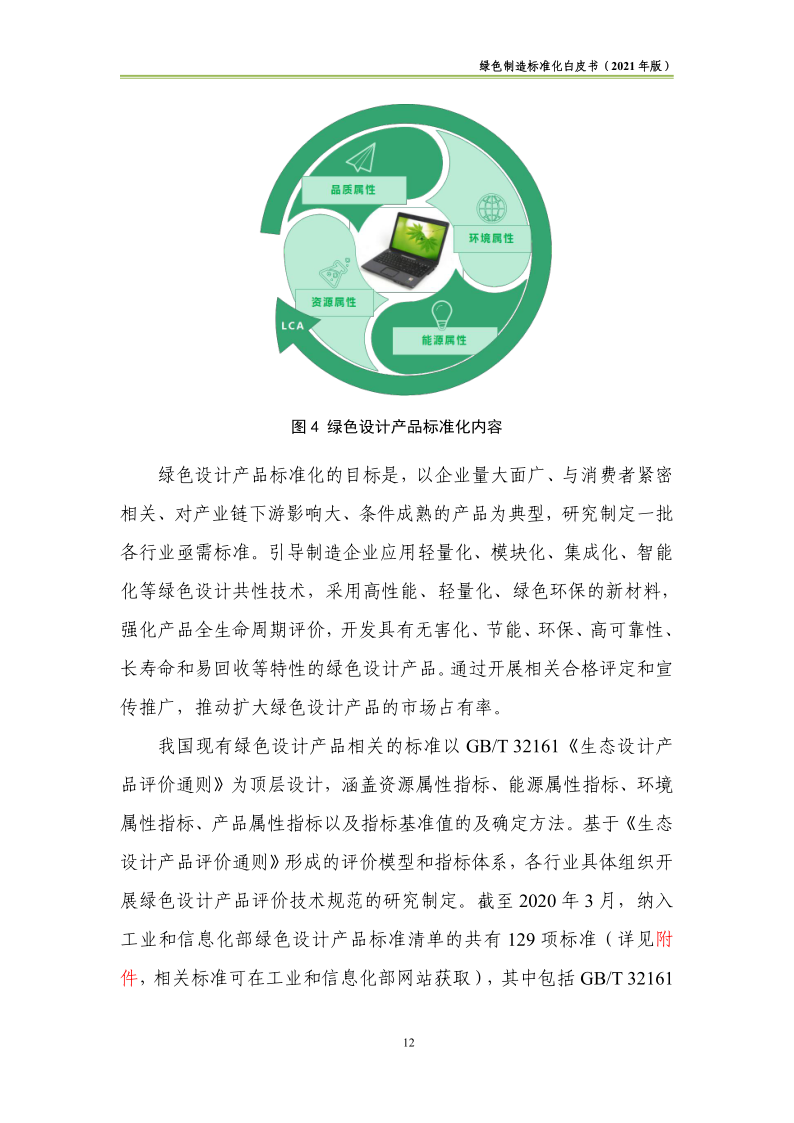 绿色制造体系建设是贯彻落实新发展理念,推进实施制造强国, 加快工业绿色低碳发展的重要保障。“十三五”以来,全国范围内已 经掀起了全面创建绿色制造体系的热潮。标准化是规范引领工业企业 绿色低碳转型,推动工业节能与绿色发展的重要手段和保障。经过五 年的努力,绿色制造标准化工作在各行业取得了积极成效,有力支撑 了我国工业绿色发展。2021 年是“十四五”的开局之年,持续开展 绿色制造体系建设仍然是我国工业发展的重要任务,也对标准化工作 提出新的更高要求。在工业和信息化部节能与综合利用司的指导下, 中国电子技术标准化研究院、北京赛西认证有限责任公司研究编制了 《绿色制造标准化白皮书(2021 年版)》。白皮书总结了“十三五” 以来我国绿色制造标准体系建设概况,绿色工厂、绿色设计产品、绿 色供应链、绿色园区等重点领域的标准化进展,以及钢铁、有色、建 材、机械、纺织、电子等重点行业的绿色制造标准化工作成绩,进而 就绿色制造标准化工作给出下一步发展建议。