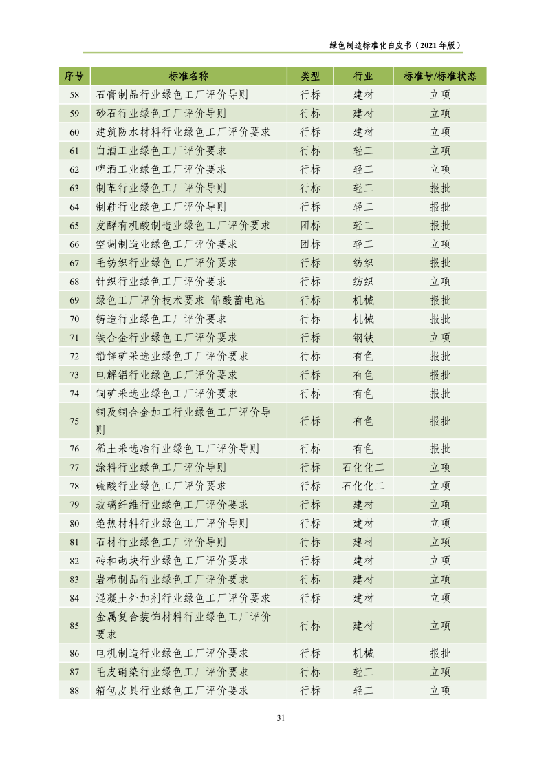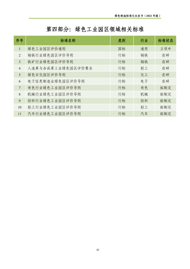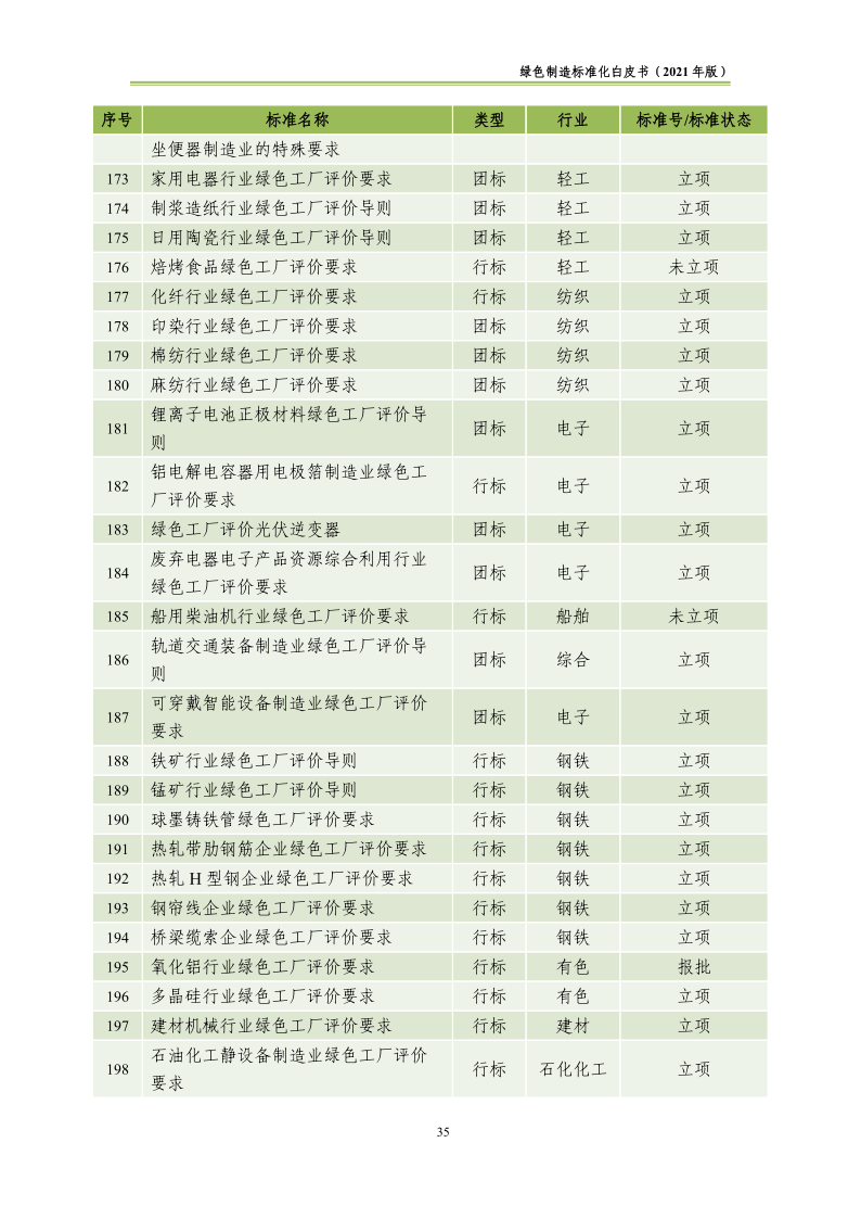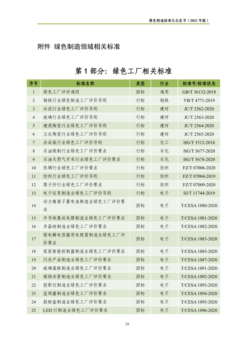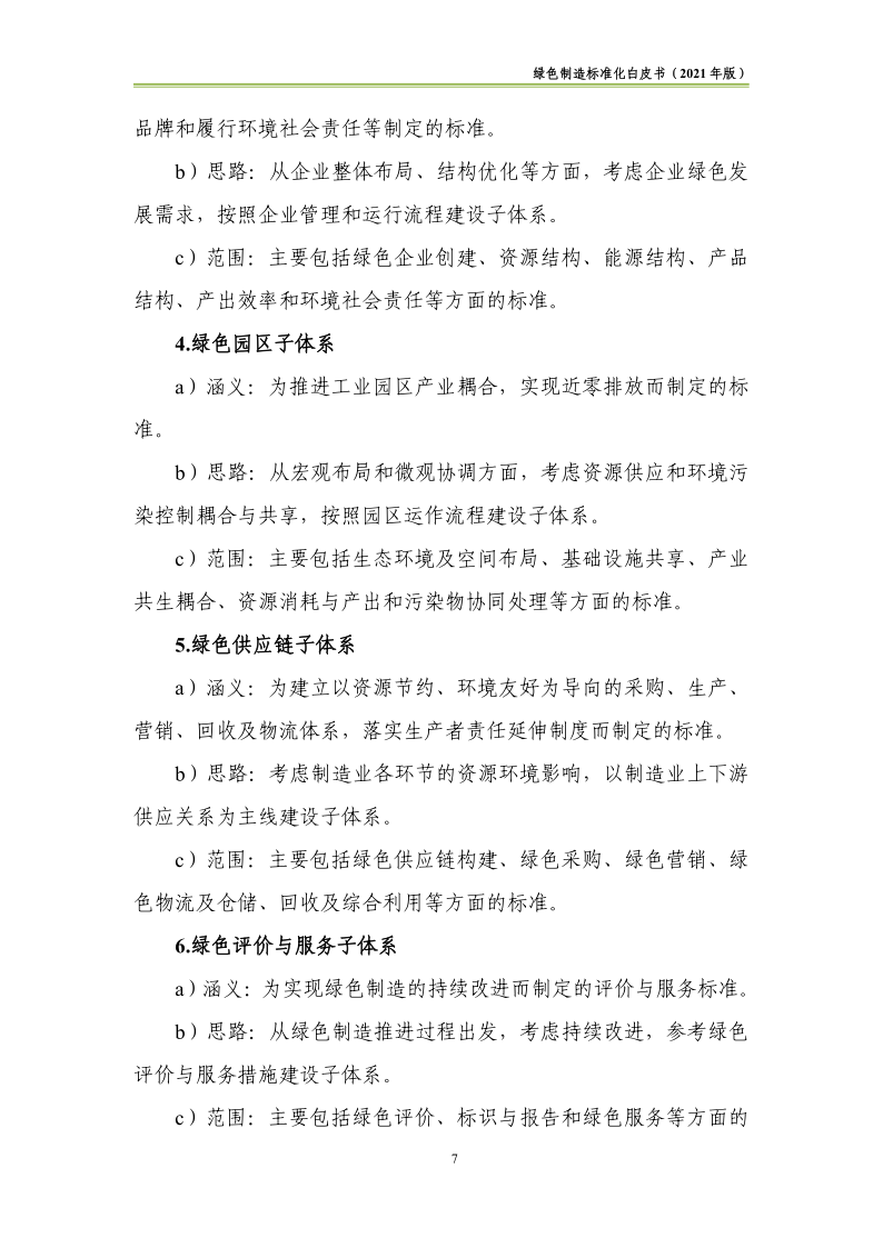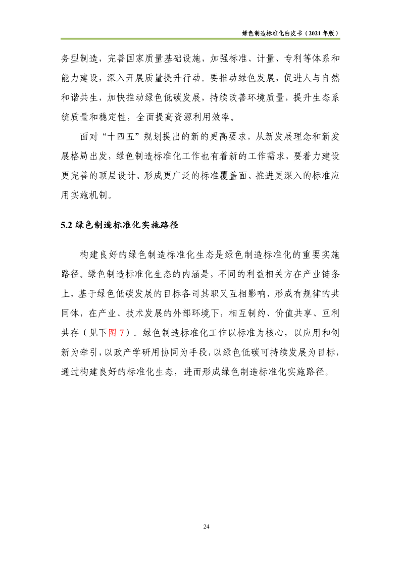 绿色制造体系建设是贯彻落实新发展理念,推进实施制造强国, 加快工业绿色低碳发展的重要保障。“十三五”以来,全国范围内已 经掀起了全面创建绿色制造体系的热潮。标准化是规范引领工业企业 绿色低碳转型,推动工业节能与绿色发展的重要手段和保障。经过五 年的努力,绿色制造标准化工作在各行业取得了积极成效,有力支撑 了我国工业绿色发展。2021 年是“十四五”的开局之年,持续开展 绿色制造体系建设仍然是我国工业发展的重要任务,也对标准化工作 提出新的更高要求。在工业和信息化部节能与综合利用司的指导下, 中国电子技术标准化研究院、北京赛西认证有限责任公司研究编制了 《绿色制造标准化白皮书(2021 年版)》。白皮书总结了“十三五” 以来我国绿色制造标准体系建设概况,绿色工厂、绿色设计产品、绿 色供应链、绿色园区等重点领域的标准化进展,以及钢铁、有色、建 材、机械、纺织、电子等重点行业的绿色制造标准化工作成绩,进而 就绿色制造标准化工作给出下一步发展建议。
