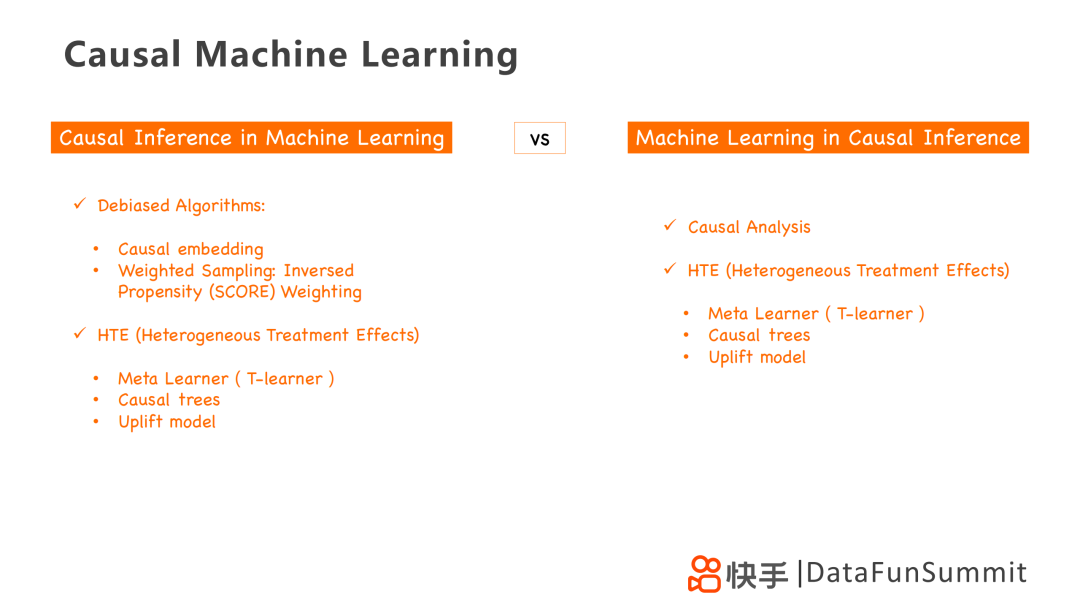 前者旨在把因果分析当做工具放到机器学习中去,后者旨在把机器学习当工具放到因果分析中去;