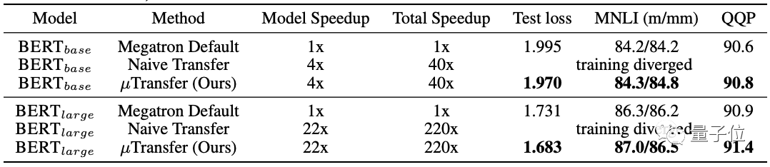 由此一来,我们可以先训练一个小版本的模型,在上面间接调整好超参,然后以零样本的方式直接将它们复制到全尺寸模型上,就能获得相当不错的性能。
