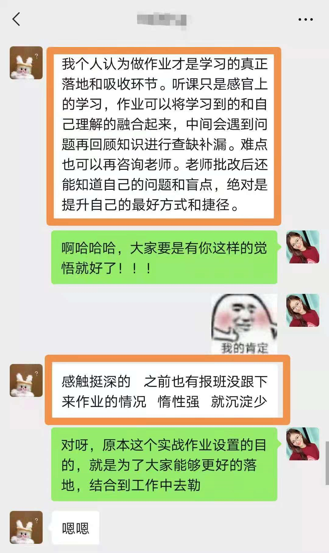 “听课也只是感官上的学习,做作业才是真正的落地和吸收环节。”“听课—做作业—查漏补缺—导师批改—发现问题—改进”,这才是学习的最佳途径。