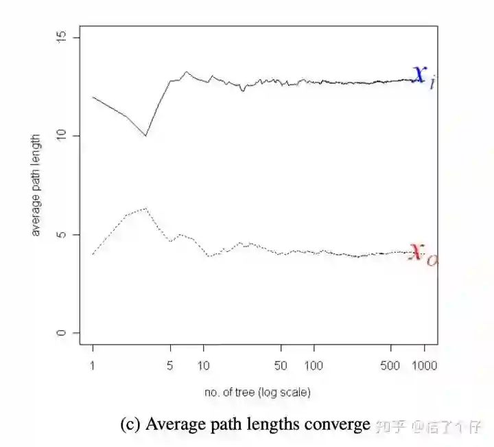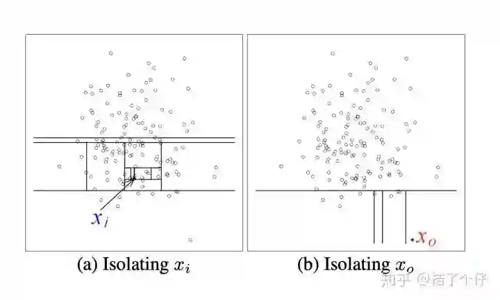为了更直观,有更多一步了解,请看下图,直觉上我们就知道xi是普通点, x0是异常点。那么用Isolation tree怎么解释呢?